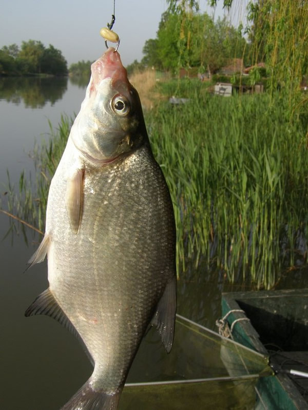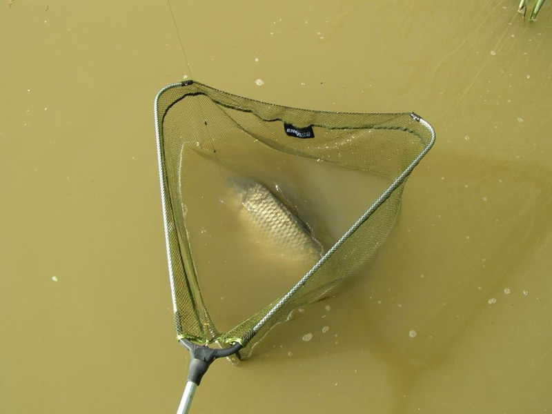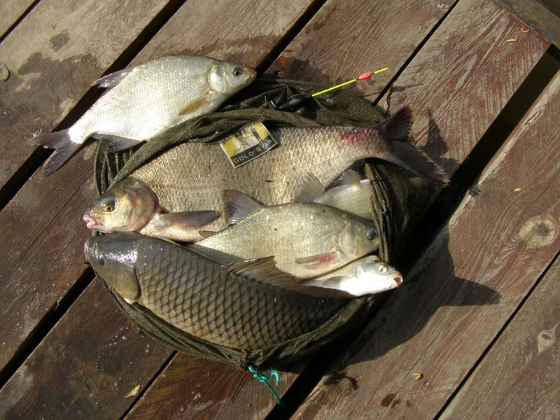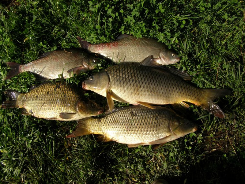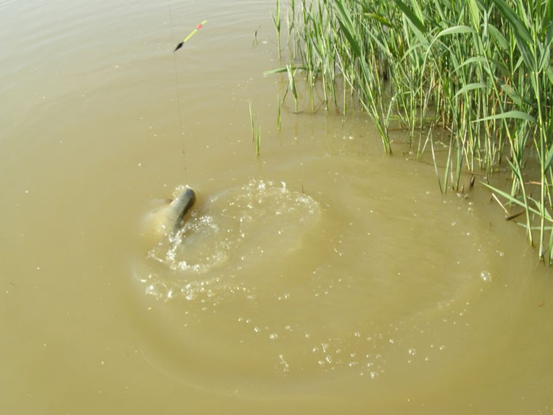 Korisť ulovená v priebehu poldňového lovu s plavákom v blízkosti porastu.
