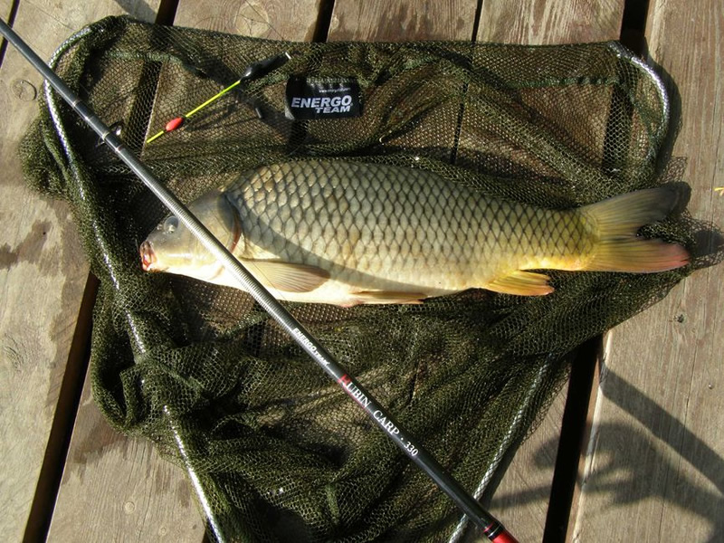 Dostatočne pevné náčinie s ľahkosťou skrotilo bojovného kapríka, ktorého som po krátkom súboji bez problémov priviedol do podberáka.